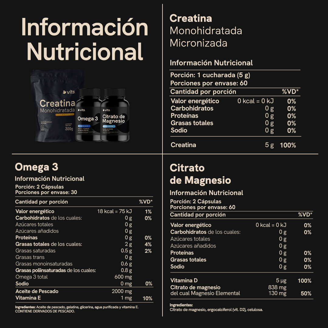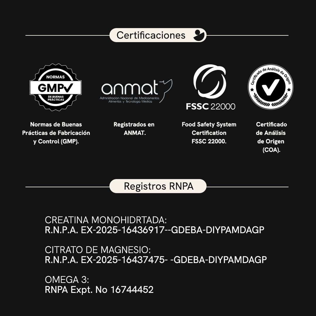 La sinergia es clave: la Creatina te da la energía para levantar más peso o correr más rápido; el Omega 3 cuida tus articulaciones y corazón del desgaste; y el Magnesio asegura que tus músculos se relajen y descansen bien por la noche para estar listos al día siguiente.
