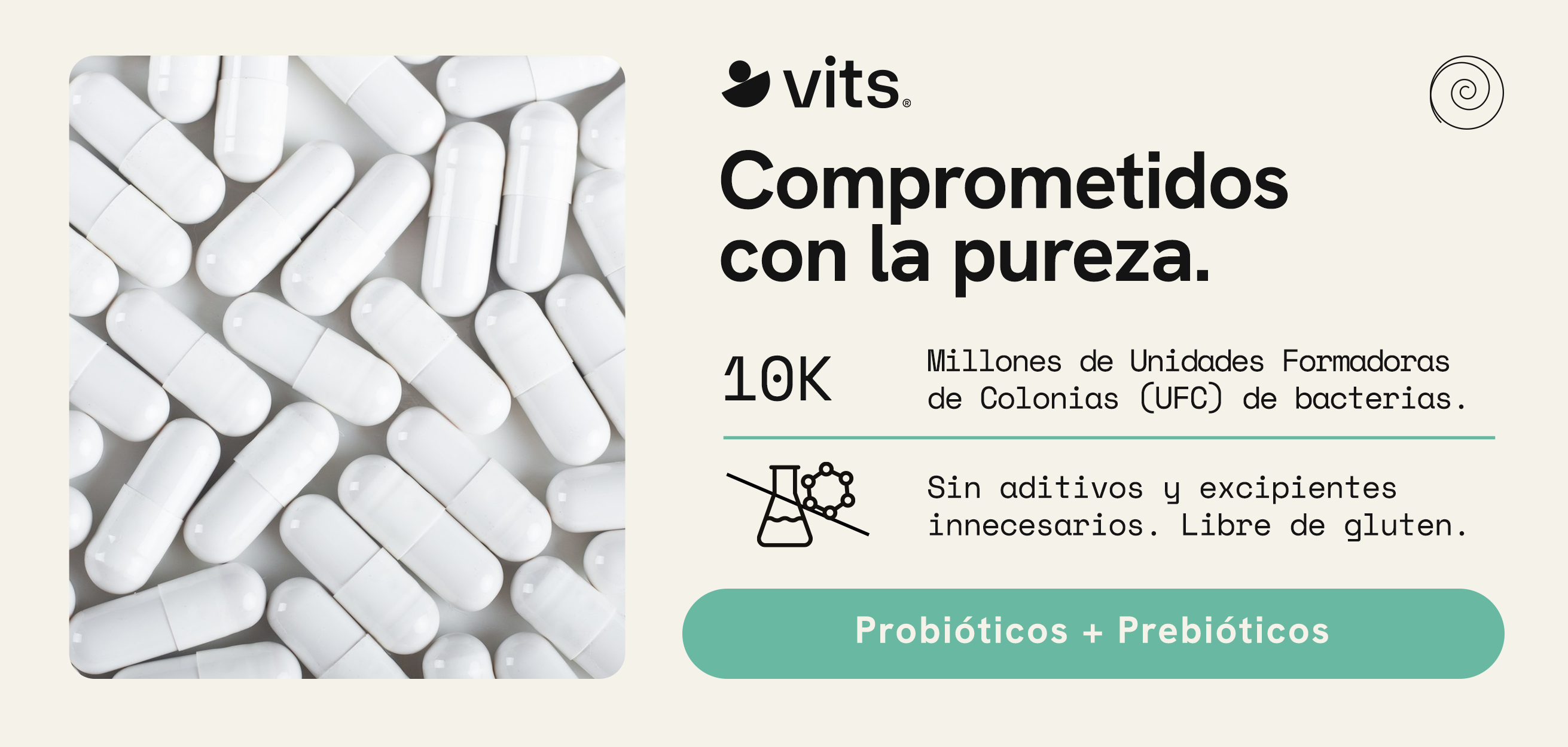 Probióticos + Prebiótico 10K Vits ofrece una fórmula simbiótica avanzada de alta potencia en cápsulas vegetales. Con una concentración de 10 mil millones de UFC, inulina y spirulina, ayuda a restablecer el equilibrio de la flora intestinal, reforzar las defensas naturales del sistema inmune y optimizar la digestión y absorción de nutrientes.